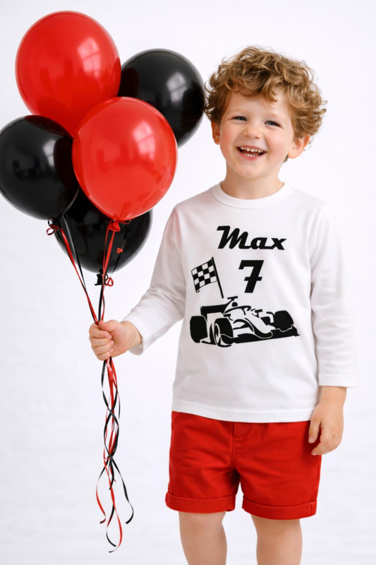 VERJAARDAG SHIRT, ALLE LEEFTIJDEN | RACE AUTOVERJAARDAGSSHIRT STOERE JONGENS – RACEAUTO – NAAM EN LEEFTIJDVier de verjaardag van je stoere jongen met dit raceauto verjaardagsshirt! Perfect voor cake smash, fotoshoot of verjaardagsfeestje, en ook een geweldig cadeau voor…