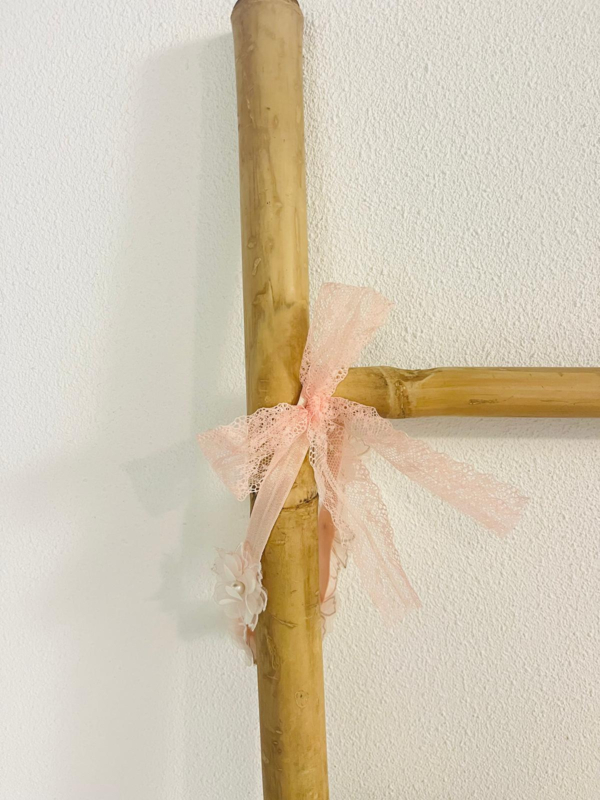 Aan de achterkant zit een kanten strik.