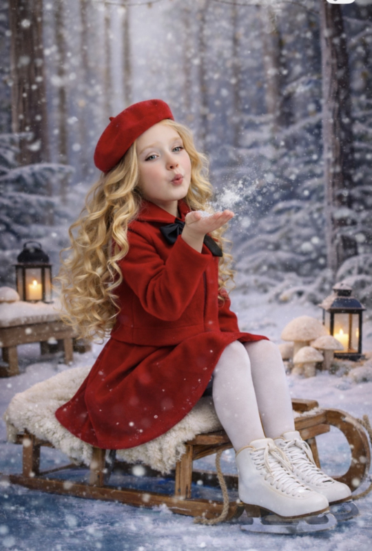 De baret maakt de outfit helemaal af en geeft een stijlvolle, klassieke uitstraling. Deze set is ideaal voor fotoshoots, feestdagen of speciale gelegenheden en belooft prachtige, onvergetelijke momenten.