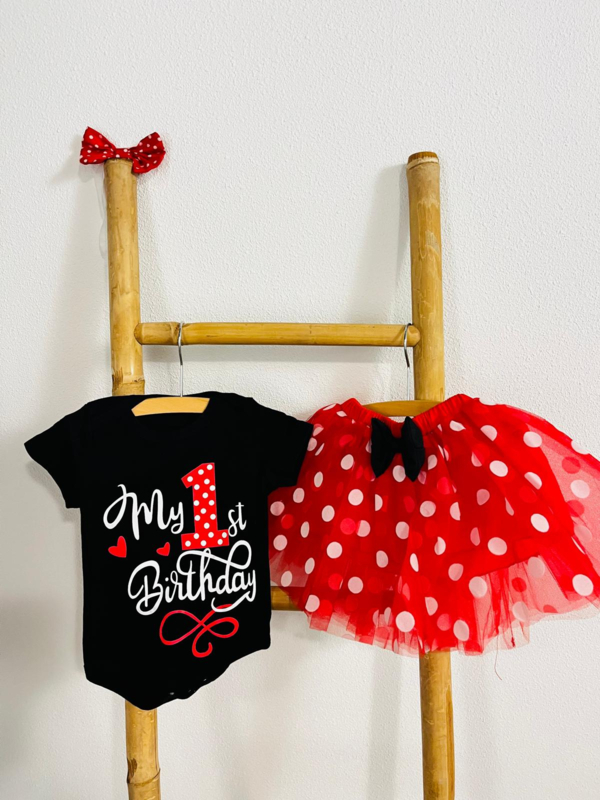 Op de romper staat My 1st Birthday