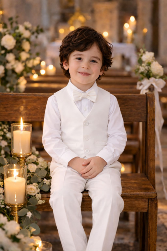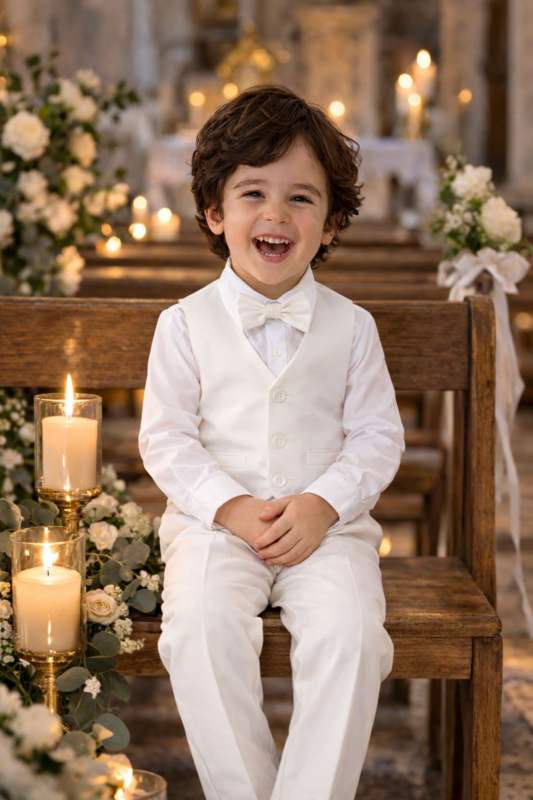 Wat zal dit stoer staan bij je mannetje! Dit stijlvolle kinderkostuum is perfect voor een communie, bruiloft, fotoshoot of andere bijzondere gelegenheid.