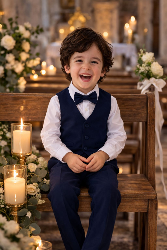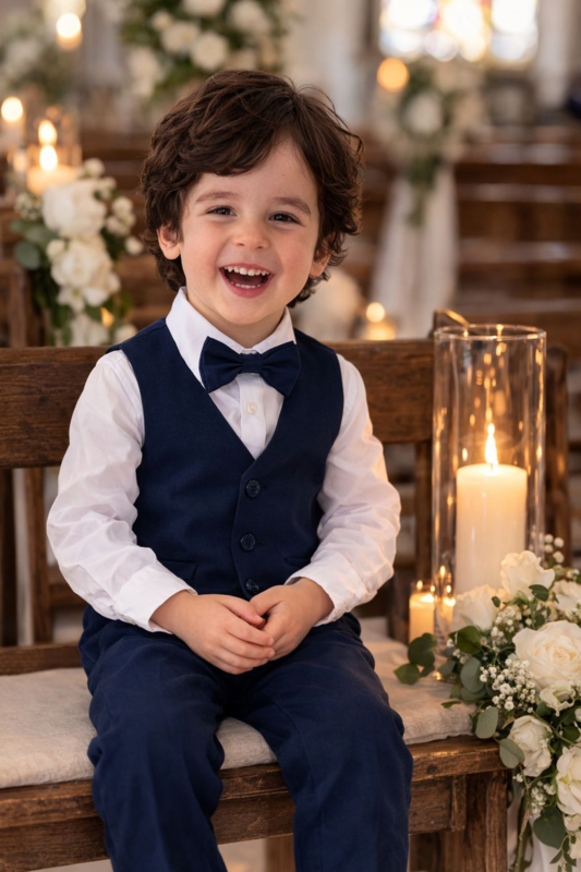 Wat zal dit stoer staan bij je mannetje! Dit stijlvolle kinderkostuum is perfect voor een communie, bruiloft, fotoshoot of andere bijzondere gelegenheid.