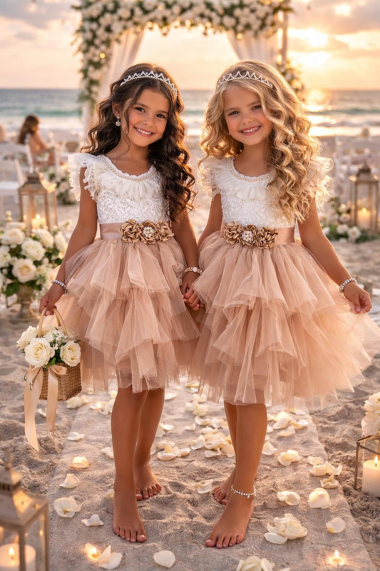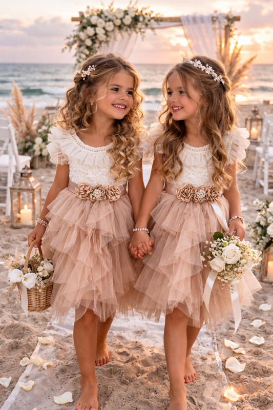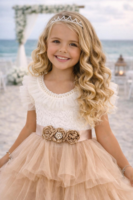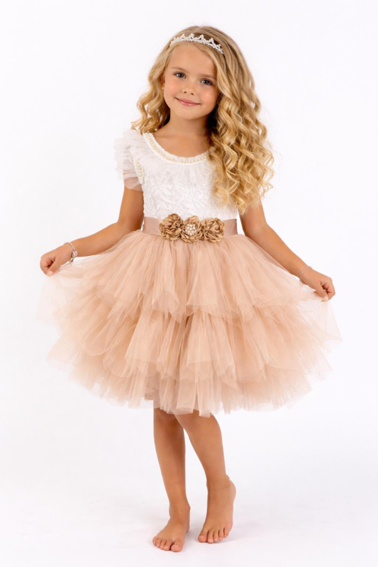 Feestjurk Latte met tule en riem (2-delig)