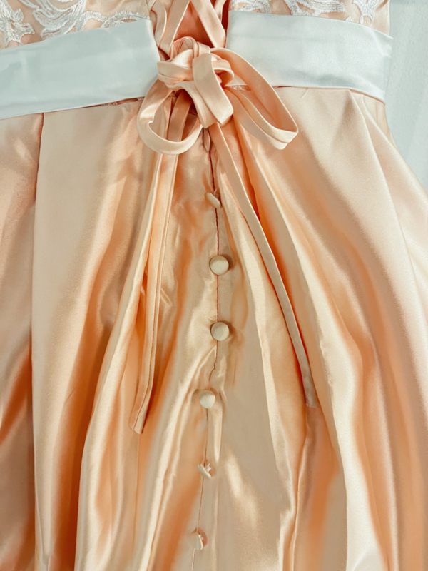 Vanuit het middel lopen er knoopjes tot einde jurk.