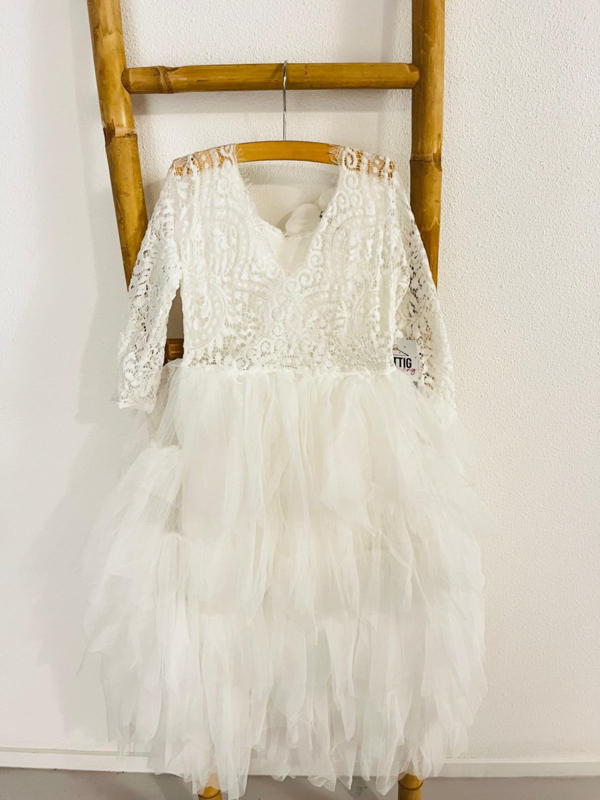 Lange feest/bruids jurk kant en tule lange mouw wit
