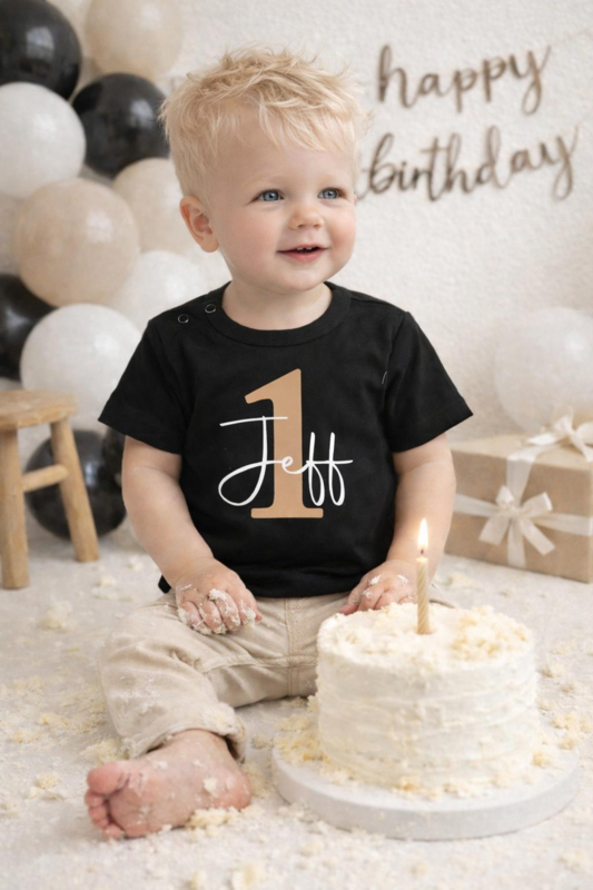 Verjaardagshirt met naam en leeftijd 1 t/m 10 jaar